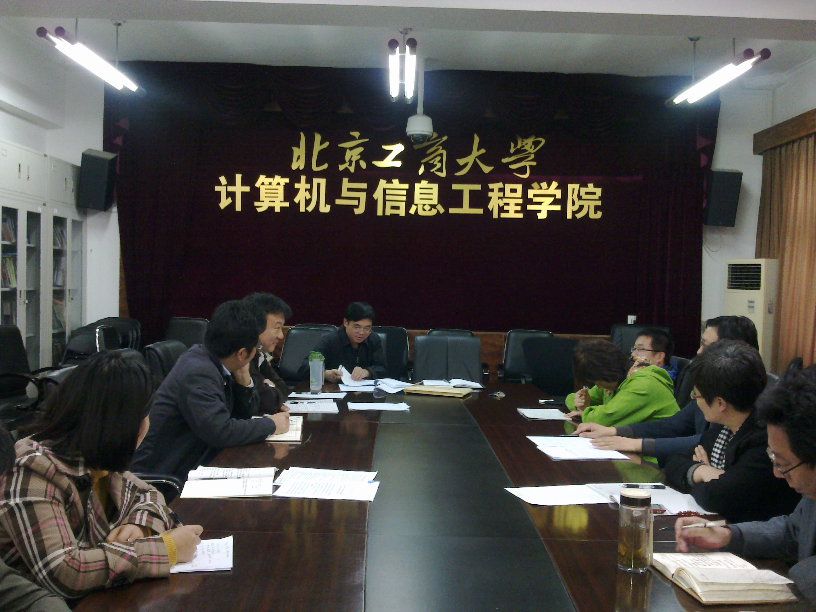 11月2日下午計算機與信息工程學院在阜成路召開了“提高辦學質量促發展、服務人民群眾樹形象”黨政聯席專題討論議,學院黨總支書記陳誼、院長劉載文、副院長郭培源、姜同強、左敏、各教工黨支部支部書記、各系主任等相關教師參加了會議,會議由陳誼主持。