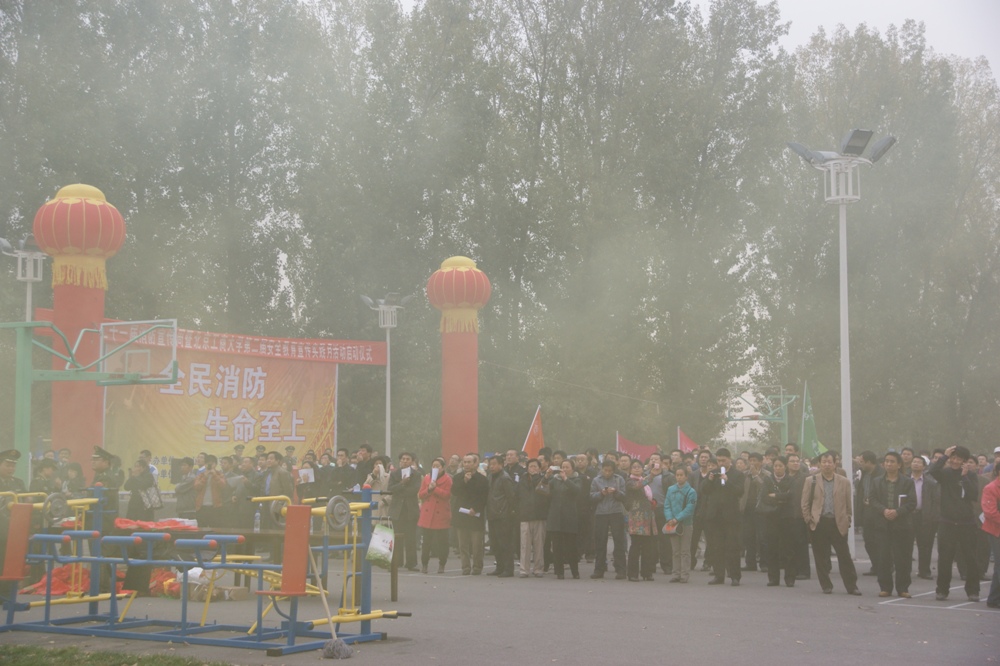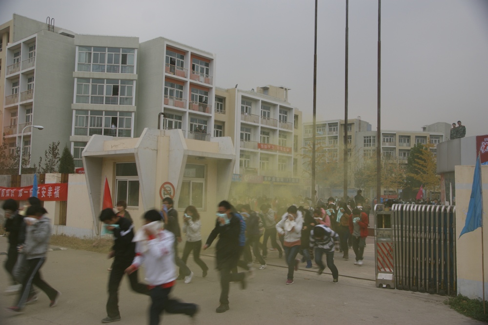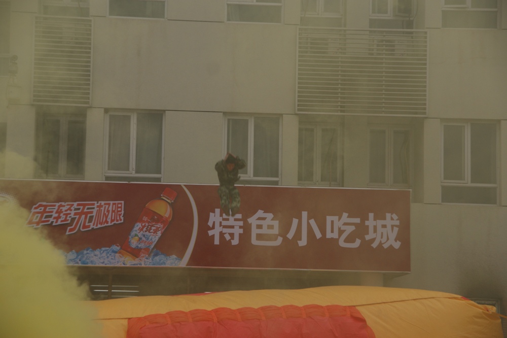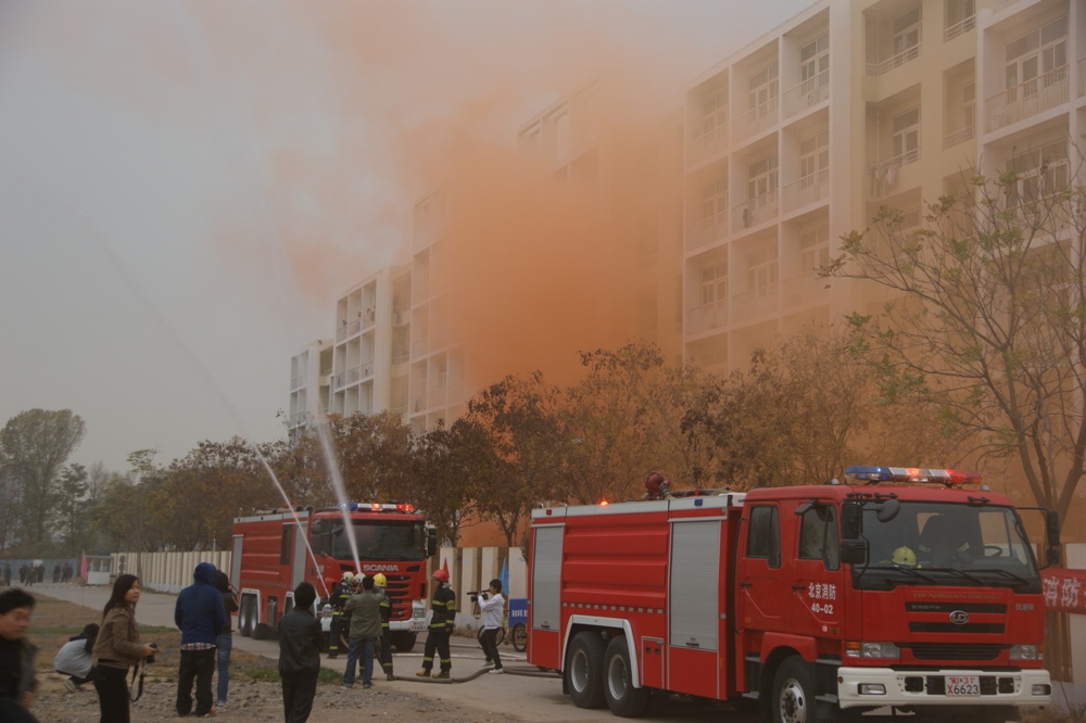 14:30分,消防演習(xí)開始。警報(bào)長鳴,煙霧滾滾,700余名大一新生有秩序地從煙霧中穿過。模擬現(xiàn)場(chǎng)非常逼真,給人以身臨其境的感覺。保安人員現(xiàn)場(chǎng)模擬了火場(chǎng)救護(hù),消防戰(zhàn)士演示了跳躍氣墊逃生,消防車進(jìn)行了滅火演示。之后,參演學(xué)生在生活區(qū)操場(chǎng)集合,觀看消防戰(zhàn)士穿戴戰(zhàn)斗服的演練,在現(xiàn)場(chǎng)的學(xué)生也進(jìn)行了試穿戰(zhàn)斗服的體驗(yàn),然后由消防官兵現(xiàn)場(chǎng)講解了滅火器的使用方法后,兩百余名師生員工在十個(gè)模擬火情現(xiàn)場(chǎng),親身體驗(yàn)了滅火器的使用和滅火的方法,最后,保安人員用消防水帶將火徹底撲滅。