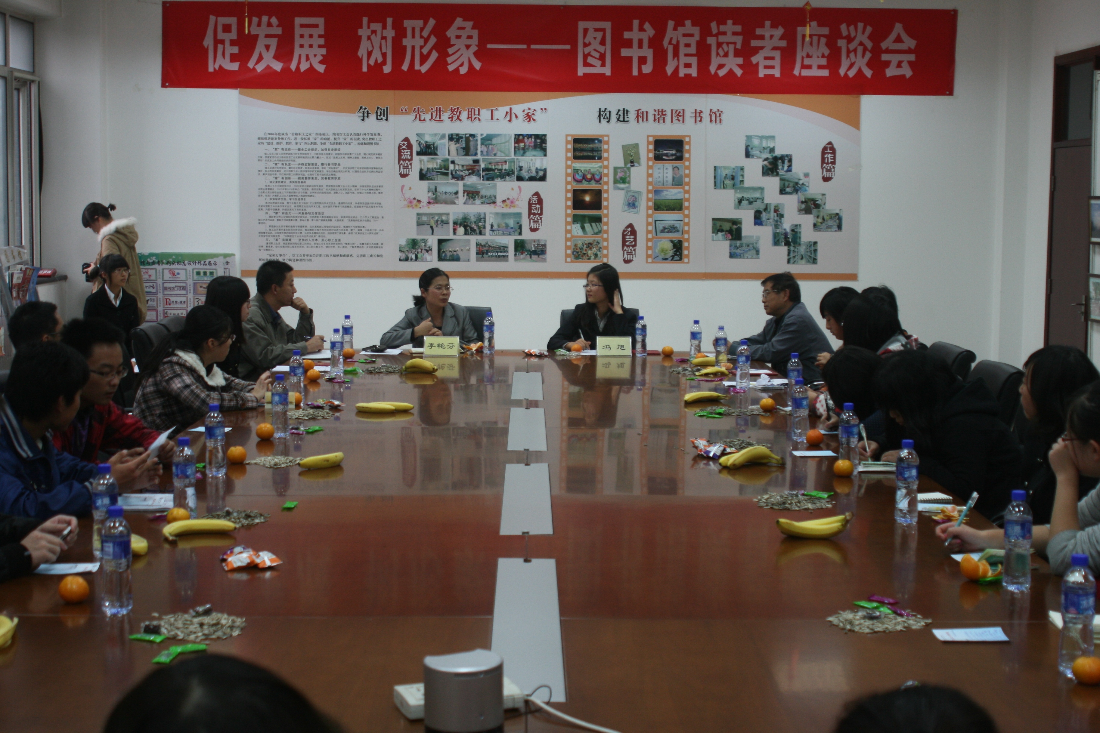 11月2日下午,“促發展,樹形象——圖書館讀者座談會”在良鄉校區召開。圖書館領導、相關部門主任、圖書館學生管理委員會、勤工助學小組及讀者代表等40余人參加會議。