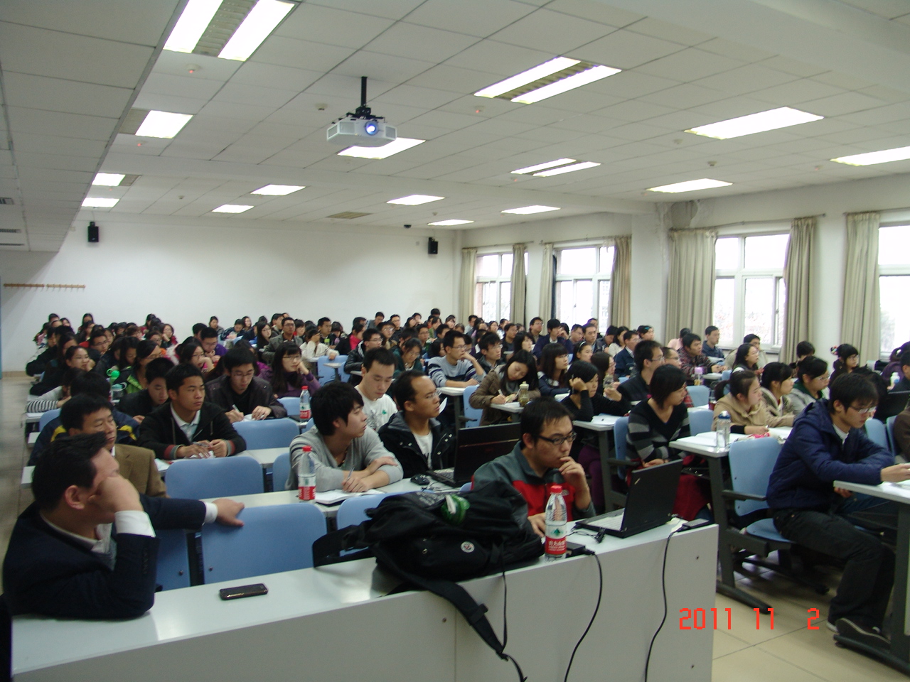 11月2日,系列講座第一講由經濟學院證券期貨專家胡俞越教授開始,胡俞越作了題為“當前中國經濟形勢與戰略轉型”的報告,他極其敏銳的思維和幽默的語言博得滿堂彩。短短兩個小時,胡俞越講授分析了中國與國際經濟形勢,以其獨特的視角分析了某些經濟問題。為同學們拓寬了思考問題的角度,對科研、做人有非常大的幫助。