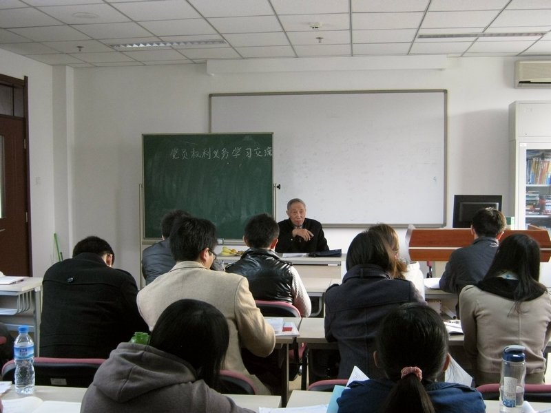 老黨員同志首先向大家生動講述了自己當年入黨的心路歷程以及幾十年來伴隨中國共產黨的發展壯大,經歷過的風風雨雨。從他們樸實的敘述中,同學們深深感受到了老黨員對祖國的責任感和對黨的忠誠之心。然后,老黨員們帶領積極分子們一起學習了黨章中關于黨員的權利和義務的規定,使大家對中國共產黨黨員這個光榮的稱謂有了更加深刻的認識。要成為一名真正合格的共產黨員,不僅要明白黨員的權利和義務,更要不折不扣地踐行;不僅要樹立共產主義偉大理想,保證對黨和人民的忠誠,更要將全心全意為人民服務作為一切行動的根本指針,學會如何更好地履行黨員的義務,行使黨員的權利。同時,老同志們還對積極分子們提出了殷殷的期望,希望大家能夠認真學習黨的基本理論知識,經受考驗,全心全意為人民服務,早日成為一名合格的共產主義戰士。