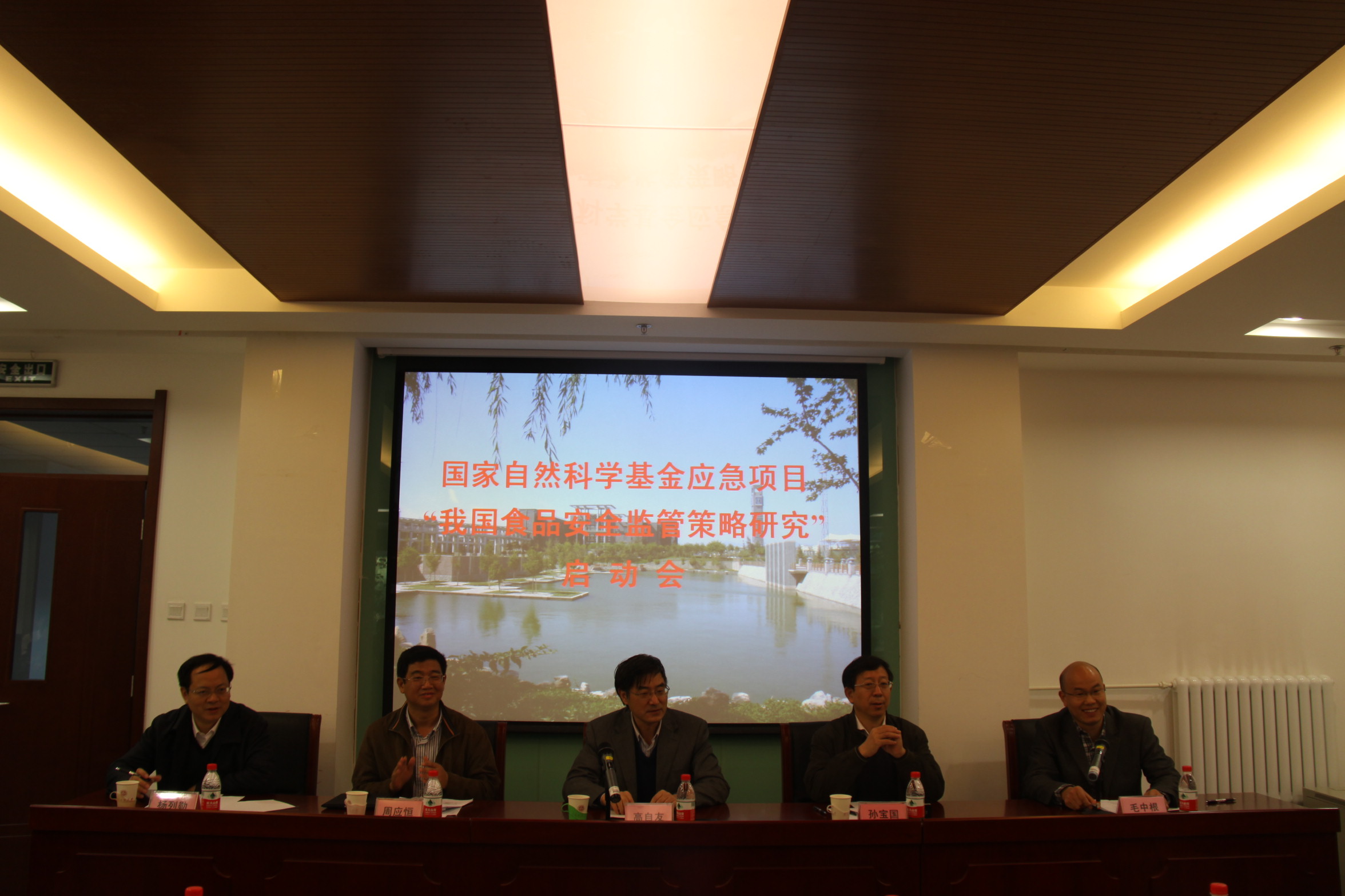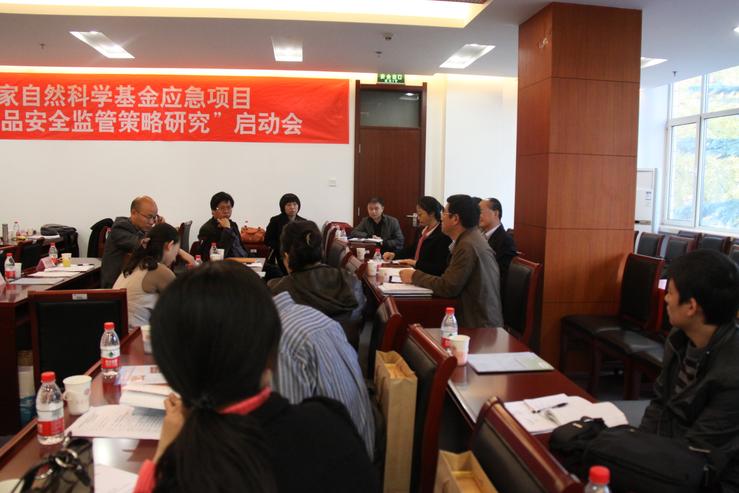 11月10日,國家自然科學基金委員會管理科學部主任基金2011年第3期應急項目“我國食品安全監管策略研究”項目啟動會在我校阜成路校區綜合樓召開,國家自然科學基金委員會管理科學部副主任高自友、管理科學部三處處長楊列勛、辦公室宣傳處副處長沈林福、管理科學部三處鐘永光、毛中根、該項目負責人我校工程院院士孫寶國副校長和南京農業大學周應恒教授以及來自全國各高校的12個子課題負責人、相關項目組成員共40多人出席了本次啟動會。