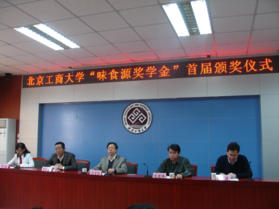 11月28日下午,“味食源獎學金”首屆頒獎儀式在阜成路校區教三樓舉行。北京工商大學副校長孫寶國院士、北京味食源食品科技有限責任公司總經理劉濱、食品學院副院長王成濤、食品學院食品科學與工程系主任宋煥祿出席。儀式由食品學院黨總支書記何猛主持。