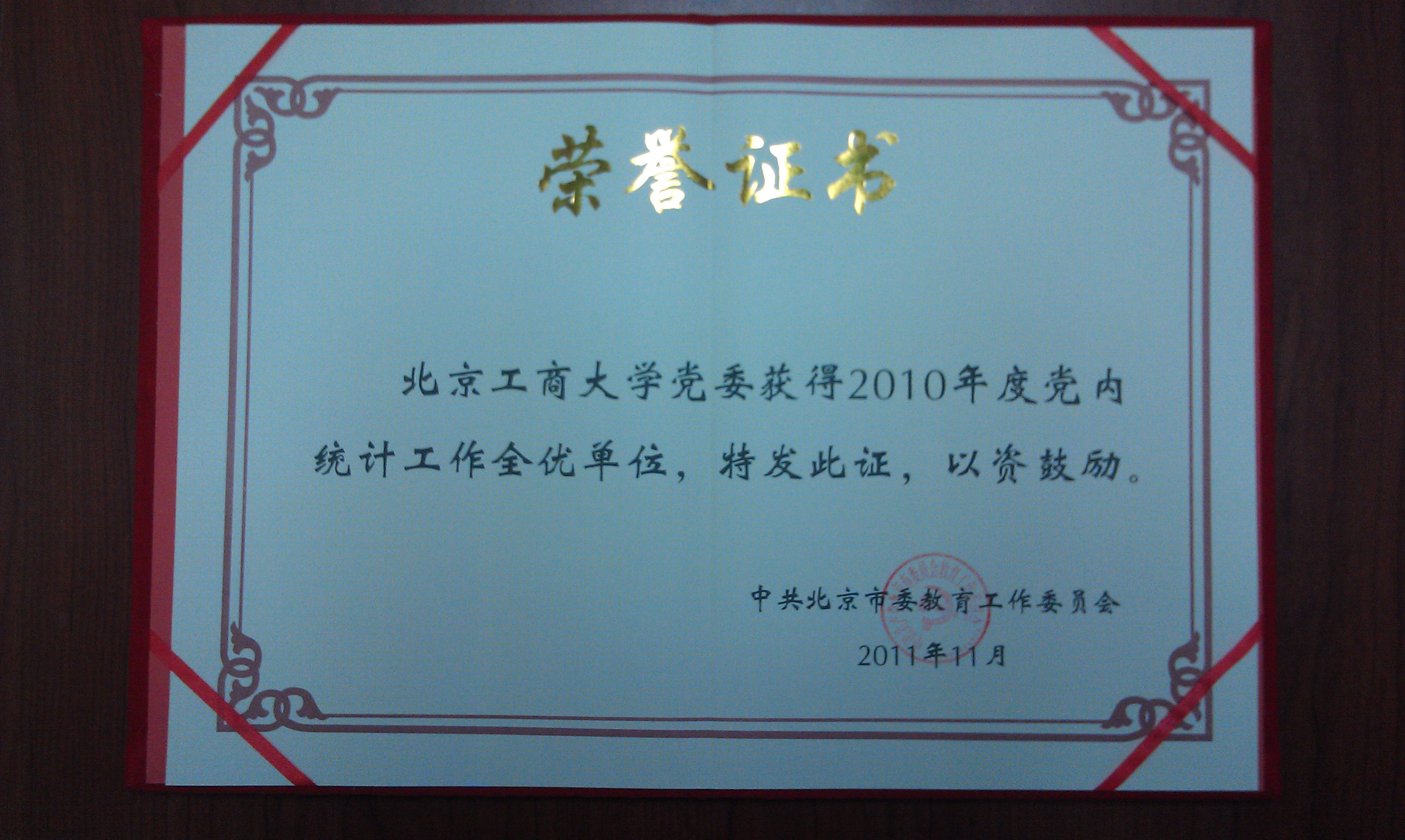 11月29日,北京市委教育工委召開北京高校年度黨內統計工作會議,學校榮獲“2010年度北京高校黨內統計工作全優單位”稱號。