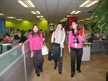 12月1日下午,外國語學院黨總支副書記楊秀萍、計算機與信息工程學院黨總支副書記鄭喜嬌和外國語學院團總支書記張悅一同走訪了位于中關村地區的樂元素游戲公司,與該公司的主管領導進行了溝通和交流,并看望了在此工作的北京工商大學的校友和應屆畢業生。近兩年,北京工商大學外國語學院、計算機與信息工程學院和藝術與傳媒學院均有畢業生進入該企業工作。此次走訪企業,一是為了看望在這里工作的我校往屆和應屆畢業生,了解他們的工作環境;二是為了與企業管理層進行交流,為今后畢業生搭建良好的就業平臺。