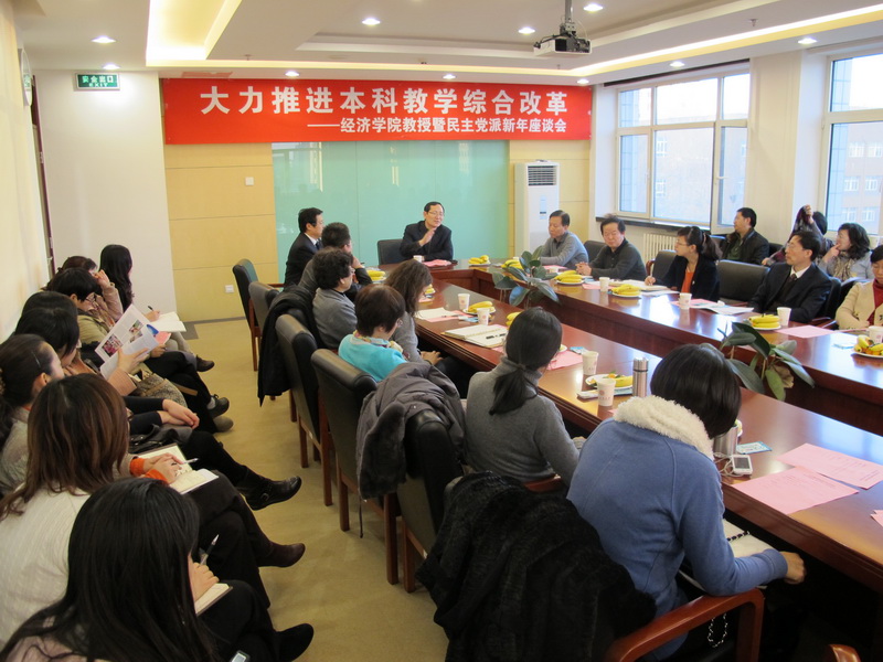 12月7日,經濟學院在阜成路校區舉辦“大力推進本科教學綜合改革——經濟學院教授、民主黨派人士新年座談會”,譚向勇校長出席本次座談會并發表講話。座談會由黨總支書記李寶仁教授主持,經濟學院院領導、教授、民主黨派、系主任、教研室主任及行政、黨務辦公室主任參加了會議。