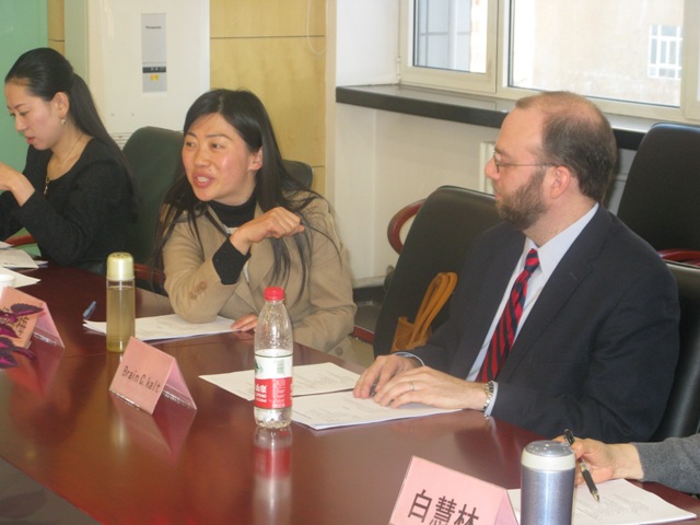 12月21日,美國密西根州立大學法學院教授BRIAN C.KALT應邀訪問法學院。當天下午,在阜成路校區召開教務處主辦法學院承辦的“中美法學教育優化課程建設研討會”。法學院院長李仁玉教授出席會議并講話。副院長呂來明教授、法學本科教學深度課程改革項目組成員以及各教研室骨干教師、參加會議。會議由副院長謝安平主持,法學院教師副侯雪梅任翻譯。