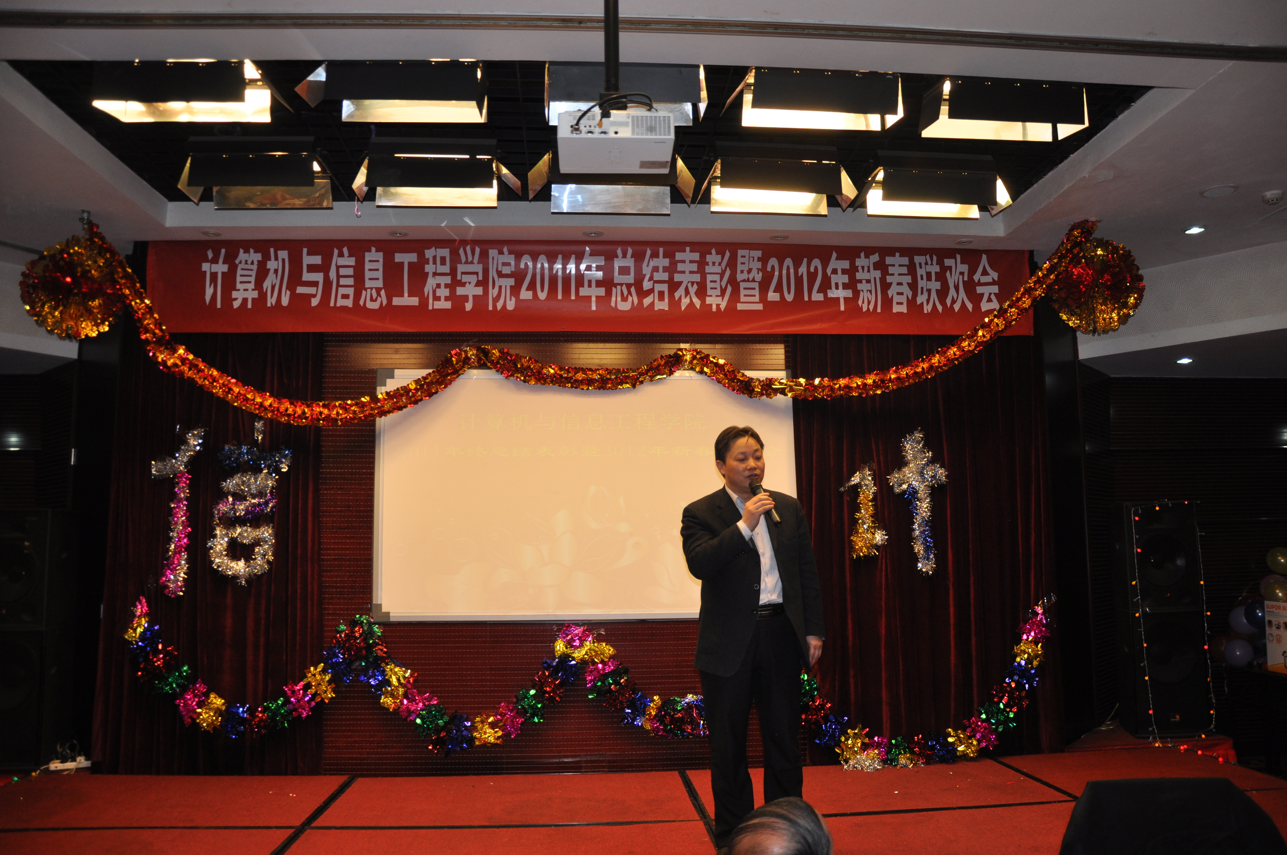 2011年12月30日晚,計信學院全體教職工歡聚一堂,舉行2011年總結(jié)表彰會暨新年聯(lián)歡會。副校長方德英、校工會主席韓寶龍、網(wǎng)絡(luò)中心主任劉翠玲、研究生處副處長莫倩、科技處副處長王小藝應邀出席了表彰聯(lián)歡會。