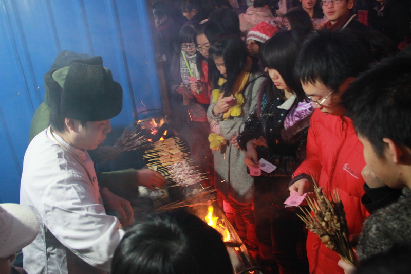 文體館外的小吃街也非?;鸨?敬當偳暗耐瑢W排成了小長隊,噴香的紅薯、玉米、烤腸、麻辣燙、爆米花、灌腸等小吃吸引了不少同學駐足品嘗。