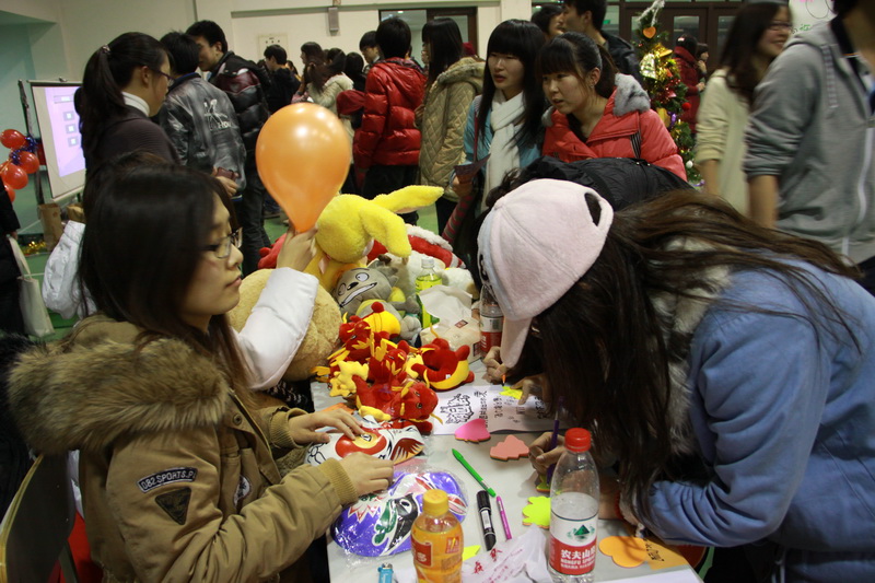 要說互動性最強的活動,當屬游園會了。咚咚的鼓點聲,五顏六色的氣球、彩帶和一串串懸掛的燈謎,同學們有的在冥思苦想,有的在用各種電子設備搜索答案,還有的因答對題而歡呼雀躍……工作人員在一旁維持秩序、組織發獎,辛苦的同時,臉上也洋溢著喜悅之情。