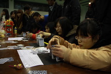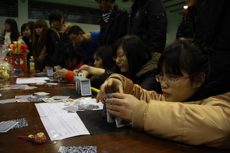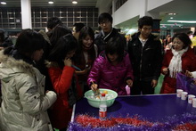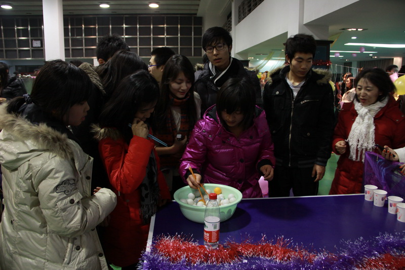 猜詞牌、猜地名、猜電力名詞、猜文學作品……今年的燈謎涉及范圍更廣,較往年更增添了一些文化“味道”。燈謎墻上的謎題被聰明的同學們一個一個揭走,又有新的謎題不斷由工作人員更新上來。領獎處排起了長隊,獎品也在不斷地補給。拿到獎品的同學既興奮又滿足。而另一邊,各學院組織的活動組成了游園會的另一陣營。隨著歡呼聲、尖叫聲和有力的擊鼓聲,只見乒乓球在參賽同學的筷子上進行著接力。搶凳子,踩氣球,畫笑臉……一個又一個游戲,同學不斷加入其中。“很開心,拿到了大獎哦!”計算111班的周玉琢同學開心地說。