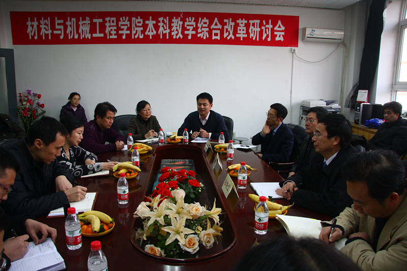 1月5日下午,為貫徹落實校發(fā)[2011]79號文件精神,推進本科教學綜合改革,材料與機械工程學院在阜成路校區(qū)耕耘樓召開了本科教學綜合改革研討會。副校長李朝鮮,教務(wù)處處長張曉堂、副處長祝鈞應邀出席會議,材料與機械工程學院書記呂東燕、院長蔡強、副院長王向東、副書記馬春輝,各系和教研室主任、教授及部分骨干教師參加會議。會議由材料與機械工程學院副院長項輝宇主持。