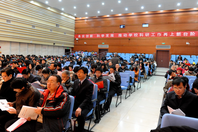 謝志華副校長作主題為《務實創新、科學發展、努力推動學校科研工作再上新臺階》的年度科研工作報告。報告總結了2011年學校科研工作的主要成績:科研項目數量和水平不斷提升;科研經費持續增長、再創新高;科研成果數量、質量明顯提高;科研優勢特色進一步突現;科研成果轉化成效顯著;科研隊伍建設進一步加強;科協引領科技的示范效應得到充分體現;學術交流日益活躍。報告明確了2012年學校科研工作的思路與任務,提出了2012年學校科研工作的目標與舉措:一是實施文化創新戰略,強化科研服務首都社會經濟建設;二是進一步提高科研質量和水平,完善科研評估體系;三是優化科研資源配置,提高學校科研資源的使用效率;四是加大青年教師培育力度,快速提高青年教師的科研實力與水平;五是理順科研管理體制機制,不斷提高管理服務科研的效率。