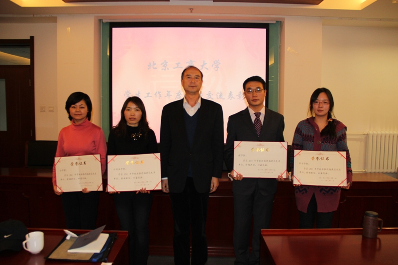 大會第二階段為總結(jié)表彰。學生處根據(jù)2011年整體工作計劃,以精細化管理為原則,對各項學生工作建立了詳細的評價指標體系,據(jù)此評選出本年度就業(yè)工作、學生資助、心理素質(zhì)教育、班級建設(shè)、學生科技立項、征兵工作等方面的先進單位并進行了表彰。