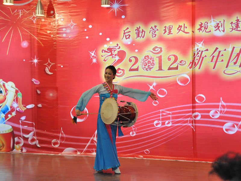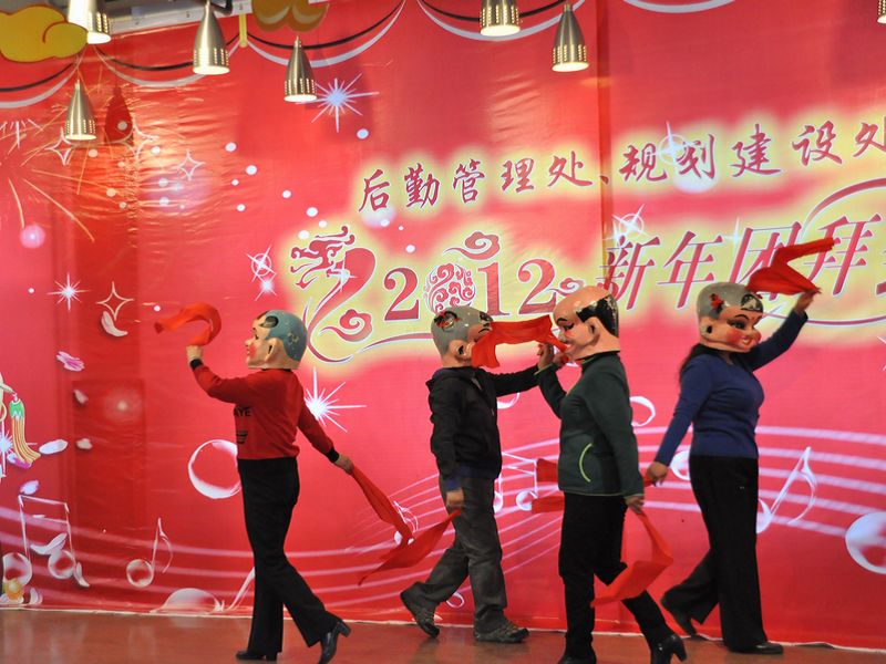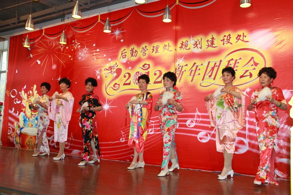 團拜會在后勤、基建中層干部的《新年好》歌聲中拉開了序幕,隨后,歡快的“大頭娃娃”演唱的《回娘家》、優(yōu)美的朝鮮族舞蹈、充滿樂趣的甩蔥歌、改編的表演唱《維修歸來》、小品《非誠勿擾》、旗袍時裝秀等接連出場,新老職工載歌載舞,贏得了陣陣熱烈的掌聲。最后,歌曲《走向復(fù)興》將團拜會推向了高潮。