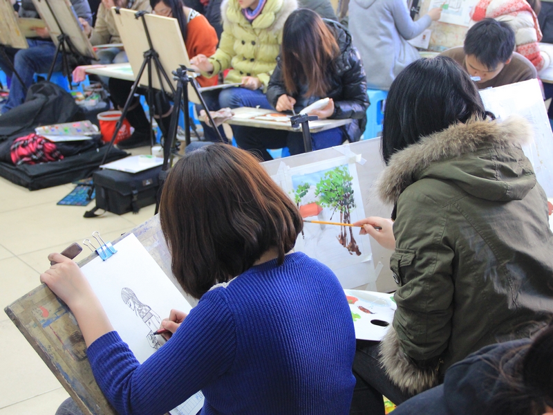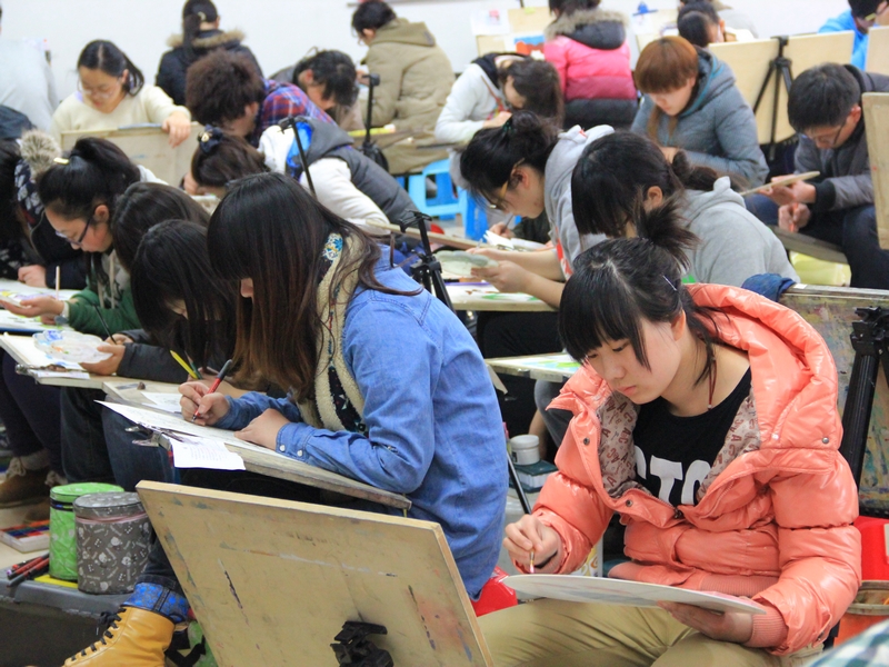 校考北京考點的考試火熱進行中。考生們正用他們手中的畫筆描繪心中的夢想和美好的明天。