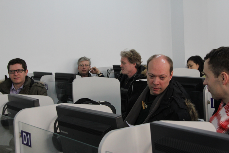副院長劉紅艷向老師們介紹了外教們的教育背景和專業(yè)特長。張衛(wèi)晴副院長分組布置研討。學院英語教師們紛紛介紹了學生的基本情況、學生感興趣的話題,外教則根據(jù)他們的教學經(jīng)驗對如何上聽說課進行了概述,并提出自己對課堂規(guī)劃的設想,大家進行了教學研討。通過交流也使外教們了解了校園,熟悉了教室,為進入課堂、平穩(wěn)有序的開展教學活動做準備。