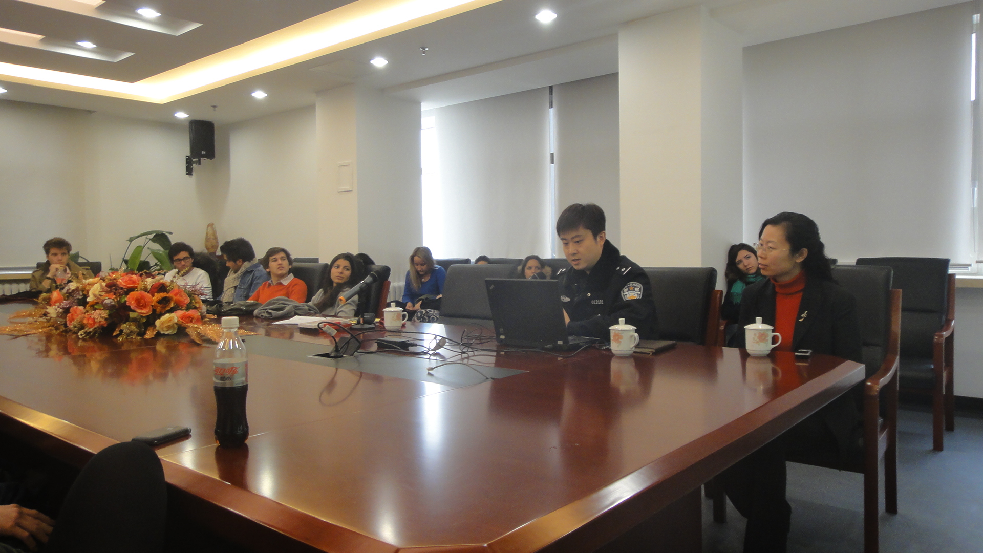 3月6日下午,國際交流與合作處召開2012年外國留學(xué)生新生法制宣傳培訓(xùn)會。北京市公安局出入境管理總隊的張博圃警官應(yīng)邀來校為外國留學(xué)生進(jìn)行講座。國際處劉影副處長及相關(guān)工作人員出席會議。