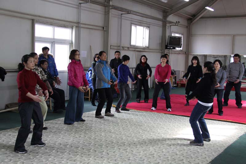 上午10點,體藝部全體老師齊聚操場,在體藝部主任顧紅的帶領下,拉開了慶祝“三八”節活動的序幕。伴著和煦的陽光,男女老師們一齊上陣,展開了別開生面的集體跳繩比賽。活動中,老師們踴躍參與、默契配合,場面熱烈、氣氛和諧,充分展現了體藝部積極向上、力爭上游的風采。隨后大家一起來到體操房,在王立紅副主任和李紅老師的講授下,老師們學習并實踐了《八段錦》導引養生課程。導引是一種以保養精氣神為主,身心并煉,內外兼養的整體性健身養生方法。通過運動,增強生理新陳代謝過程,起到平衡陰陽、調和氣血、疏通經絡、培植真氣、扶真祛邪、強健筋骨的作用。講座課上,王立紅首先給大家簡述了導引養生課程的意義和內涵,深入淺出地讓大家在很短時間內掌握了學習導引養生的要領。李紅準確的示范和及時的指導,讓大家充分感受到了傳統體育文化的博大精深和身心合一的內在魅力。