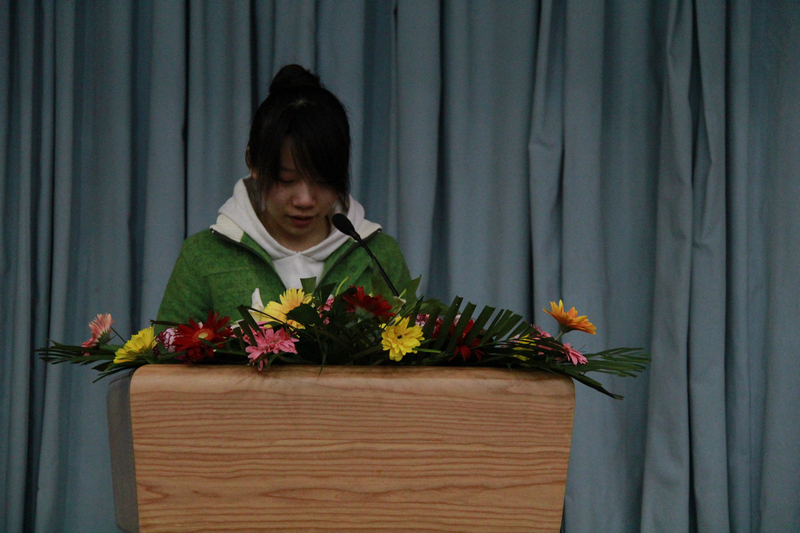 黃迪同學于2010年被評為首屆“北京市萬名孝星”,也是孝星中為數不多的90后。她在演講中講述了自己遭遇家庭變故卻仍帶著樂觀、堅強、勇敢、奮進的精神去生活、去成長。她用自己柔弱的肩膀背負起家庭的重任,并用實際行動踐行了孝親敬老的傳統(tǒng)美德,更好的展現了北京精神中“厚德”的深刻內涵。情到深處,在座師生情不自禁地流下了感動的淚水,都被其堅強勇敢、勇于付出的精神所感染。隨后,學院黨總支副書記馬韜光進行了總結。他對此次報告會的形式給予肯定,并表示:當代大學生應該以弘揚中華民族傳統(tǒng)美德為己任,倡導社會主義核心價值觀,積極踐行北京精神,弘揚雷鋒精神;黃迪同學是我們身邊的榜樣,大家要向她學習,樹立良好的道德風范,為成長成才打下良好基礎。