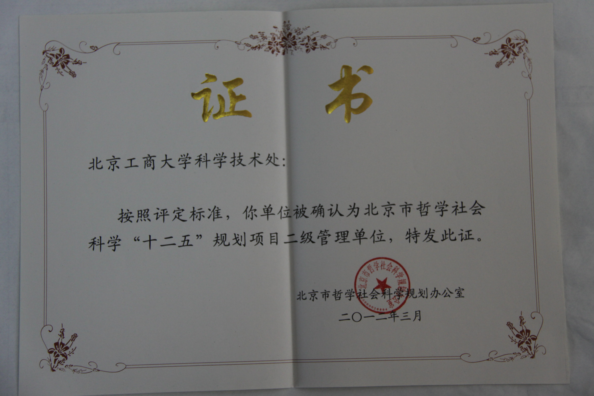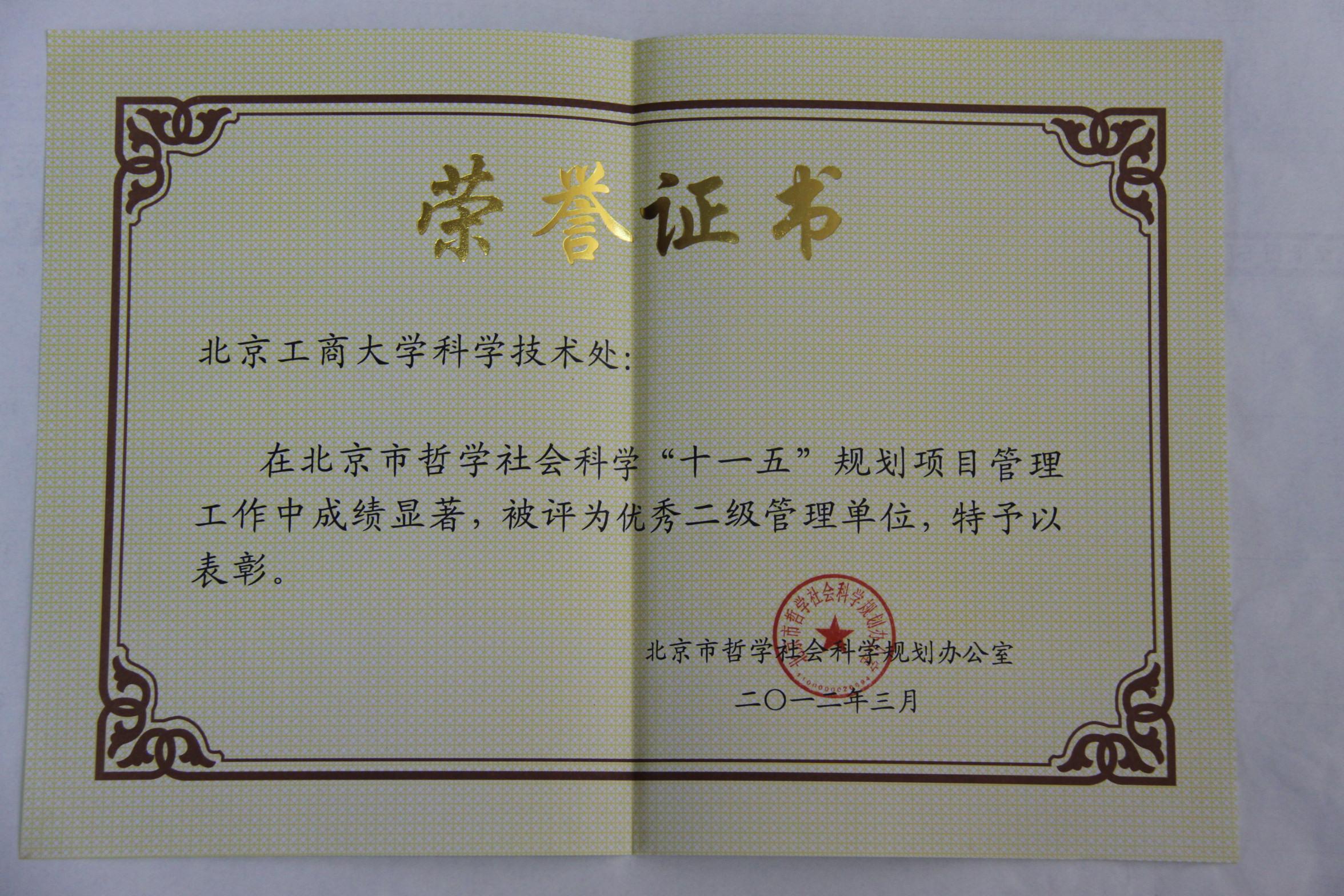 為落實《北京市哲學(xué)社會科學(xué)規(guī)劃項目管理辦法》確定的對市社科規(guī)劃項目實行二級管理的要求,為不斷提高二級管理單位的管理水平和履行科研管理職責(zé)的積極性、主動性和創(chuàng)造性,將承擔(dān)“十一五”規(guī)劃項目數(shù)在20項以上,項目管理認(rèn)真、規(guī)范,按期結(jié)項率和最終研究成果優(yōu)秀率較高的單位評為優(yōu)秀二級管理單位。我校科學(xué)技術(shù)處達(dá)到各項標(biāo)準(zhǔn),獲評優(yōu)秀二級管理單位,并且按照評定標(biāo)準(zhǔn),被確認(rèn)為北京市哲學(xué)社會科學(xué)“十二五”規(guī)劃項目二級管理單位。