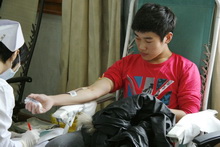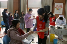 3月23日早,隨著鐘樓敲響八聲,喚醒朝陽下的校園,以“弘揚雷鋒奉獻精神、光榮獻血人道互助”為主題的2012年春季無償獻血活動在良鄉校區學生活動中心多功能廳正式開始。 本次獻血活動由學生處、校紅十字會及校醫院聯合發起,北京市紅十字會血液中心派獻血車及工作人員來我校進行校園采血。來自理學院、商學院、法學院、外國語學院以及其他各院的同學們紛紛自愿前來參與了獻血。 服務貼心 獻血放心 學活多功能廳門外擺放了介紹獻血知識的宣傳板,門上懸掛寫有“弘揚雷鋒奉獻精神光榮獻血人道互助”的橫幅。走進多功能廳,獻血工作開展得井然有序。 前來獻血的同學先在咨詢臺領取一張表格和由北京市獻血辦公室印發的獻血指南,填寫完個人基本信息后到體檢處檢查體重、血壓和血型,待檢驗結果出來,各項指標合格后就可以獻血了,最后到登記處登記并領取獻血證,獻血完成,整個過程不到20分鐘。 后勤處早早調試好了多功能廳的空調溫度,校醫院的大夫也在隨時關注同學獻血后是否有不良反應。學校、學院為獻血的同學準備了食品、糖水,市血液中心為獻血者帶來了面包、飲料和小紀念品。 此次獻血活動的學生志愿者有近70名,匯集了校紅十字會、校青年志愿者協會和自發前來志愿的同學們。數媒111、112兩個班的團支書更是組織了全班同學來做志愿者。他們佩戴條幅或身著紅色馬甲,引導、分發表格、送糖水和面包……每個環節都有他們微笑服務的身影。 參與獻血 人人光榮 本次獻血活動中,同學們的參與熱情很是高漲,很多同學早早就在多功能廳外等候,工作剛剛開始時,等待獻血的人更是排起了長隊。獻血活動從8:00持續到了12:45,據統計,在這四個多小時中,共有175名獻血者成功獻血。 第一個獻血的同學是英語112班的班長張璐。事實上,她的媽媽早上八點就要在大興醫院做良性腫瘤切除手術,她一早過來獻血,獻完就匆忙離開了。她堅持獻血的原因不得而知,但她這第一份紅色的禮物,卻給聽到這背后的故事的每顆心注入一股暖流。 十點十分,血液化驗處旁邊,工商111班的郁斌磊在焦急地等待著血液化驗結果。“獻血不怕,我就怕血檢不過。”他說:“來獻血是實現小時候的夢想,我很早就想獻血了,因為未滿18歲一直都不能獻。我也想‘為人民服務’,獻點血算是做到了一半吧。”絕大部分獻血的同學都是剛滿18周歲,第一次獻血就成了他們成年紀念簿上最有意義的一筆紀錄。 在獻血等候席的角落,記者無意發現了學校云南過橋米線店的老板娘孟立娜。她告訴記者,自己前年11月也在這里獻過一次血,她的弟弟也很想過來,但店里的活實在太忙了,家人都抽不出空來。當被問及為什么總惦念著獻血時,她說得很簡單:“對自己好,也對大家都好。” 北京市紅十字會血液中心的曹慶盛大夫介紹說:“北京的醫療資源相對集中,手術量大,平時的用血就比較緊張,而每年的3月和11月是獻血的淡季,血液供求就有缺口。所以每年血液中心都會與高校合作,把獻血車開進校園,宣傳和鼓勵同學們義務獻血。” 老師帶頭 快樂獻血 校黨委副書記盧思鋒百忙中兩次來到獻血會場,在校紅十字會的志愿者的引導下,參觀了整個獻血流程,與血液中心的工作人員交流,和在場的老師、同學愉快地談話。 學生處的徐紅京老師、王濤老師和法學院的文四英老師也加入了同學們的隊伍,帶頭獻血。徐紅京老師告訴記者,自己平常一直注意鍛煉,身體很好,但是明年他將超過可以獻血的年齡限定,這是他最后一次能獻血了。王濤老師已經獻血四次了,近三年每年都參加了學校組織的獻血活動,不僅自己帶頭獻血,她還忙著組織協調其他師生獻血,得到校醫院老師的贊譽時,她也只說:“這是應該的。” 理學院黨總支書記田宏、商學院黨總支副書記褚才寬、外國語學院黨總支副書記楊秀萍也來到獻血現場,自始至終陪伴著同學們,一同體驗奉獻的快樂。每年的獻血活動都得到了各個學院的大力支持。各院積極向學生普及獻血知識、宣傳獻血政策,鼓勵義務獻血。理學院的田宏老師說:“我們宣傳的重點是要讓學生了解獻血、不怕獻血,做到‘獻血:全知道,純自愿’。” 獻血結束后,學校及各院的領導、老師,北京市紅十字會血液中心的全體醫務人員和本次活動的志愿者們在學生活動中心門前合影留念。北京工商大學2012年春季無償獻血活動圓滿結束。