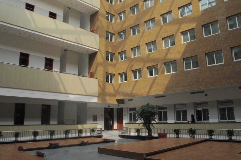 阜成路校區(qū)圖書(shū)館始建于1987年,曾于2002年進(jìn)行過(guò)一次較大規(guī)模的精裝修改造。本次抗震加固從2011年5月起至12月底結(jié)束,為期200天,在普通的抗震加固的基礎(chǔ)上,又進(jìn)行了較大的維修改造。主要項(xiàng)目有:對(duì)整棟建筑的梁、柱進(jìn)行了抗震加固;增加了書(shū)庫(kù)樓板的承重負(fù)荷;調(diào)整和規(guī)范了強(qiáng)弱電電路,增加了網(wǎng)絡(luò)端口和電源數(shù)量;整改和消除了原圖書(shū)館建設(shè)和上次裝修中不規(guī)范施工和安全隱患;更換了全部戶門(mén)、防火門(mén)和部分窗戶;重新粉刷了室內(nèi)外涂料和房間吊頂,鋪設(shè)了部分地面和墻面;增加了一部書(shū)梯;重新鋪設(shè)了屋頂防水和重新設(shè)計(jì)改造了大廳陽(yáng)光頂棚和雨棚;將原來(lái)用作招待所的地下室改為書(shū)庫(kù)。