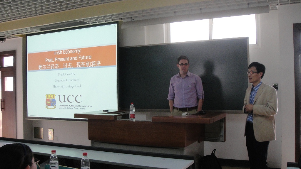 會見之前,經濟系三位教師參觀了我校良鄉校區,弗蘭克·克勞利博士在良鄉校區為我校經濟學院和商學院本科生做了題為“愛爾蘭經濟的過去、現在和未來”的講座,受到了學生的熱烈歡迎。