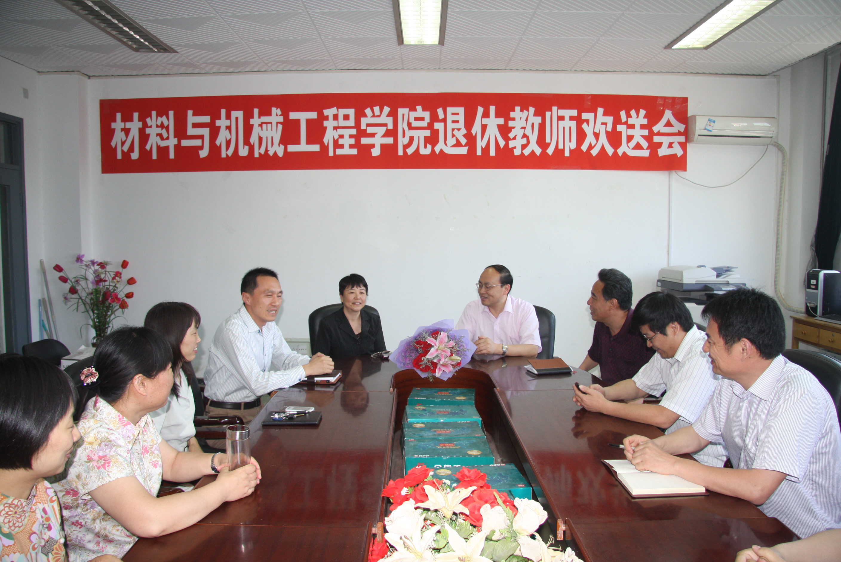 5月30日下午,材料與機(jī)械工程學(xué)院召開(kāi)退休教師歡送會(huì)。出席會(huì)議的有離退休工作處處長(zhǎng)韓寶龍,學(xué)院黨總支書記王向東,副院長(zhǎng)湯曉華、項(xiàng)輝宇,黨總支副書記楊秀萍以及學(xué)院教師代表。會(huì)議由院長(zhǎng)黃志剛主持會(huì)議。