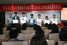 5月30日下午,學(xué)校2012年體育文化節(jié)、心理健康節(jié)閉幕式暨運(yùn)動(dòng)會(huì)文體表演總結(jié)表彰會(huì)于良鄉(xiāng)校區(qū)舉辦。北京市大學(xué)生體育協(xié)會(huì)主席杜松彭、中國少數(shù)民族經(jīng)濟(jì)文化開發(fā)總公司公關(guān)部部長周林應(yīng)邀出席會(huì)議。學(xué)校黨委副書記盧思鋒,宣傳部、保衛(wèi)處、后勤處、體育與藝術(shù)教學(xué)部、學(xué)生處、團(tuán)委等部門負(fù)責(zé)人,以及各體育社團(tuán)指導(dǎo)老師,各學(xué)院團(tuán)總支書記、輔導(dǎo)員、學(xué)生代表參加活動(dòng)。