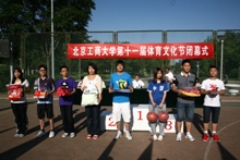 與此同時(shí),籃球場上,體育文化節(jié)也進(jìn)行了最后一個(gè)項(xiàng)目——3V3籃球賽的決賽。賽后的閉幕式上表彰了承辦足球聯(lián)賽、3v3班級(jí)籃球賽、排球聯(lián)賽、乒乓球班級(jí)團(tuán)體賽、羽毛球班級(jí)團(tuán)體賽、網(wǎng)球賽、毽繩比賽、定向越野賽八項(xiàng)活動(dòng)的體育類社團(tuán),并贈(zèng)送紀(jì)念品。北京市大學(xué)生體育協(xié)會(huì)主席杜松彭發(fā)表講話,對(duì)大學(xué)生積極參與體育活動(dòng)的態(tài)度進(jìn)行了贊揚(yáng)及鼓勵(lì)。