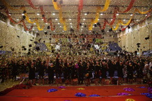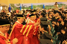 最后,校領導們走進了各學院的就座區域,與學院領導和老師一起為工商學子撥正流蘇、合影留戀,共同見證這難忘的時刻。各學院的畢業生一同起立,高喊著學院口號,用詩朗誦、橫幅展示、合唱畢業留戀歌曲等形式再一次展示了學院的風采和對母校的留念,畢業生們帶著不舍向校領導和學院老師揮手告別。
