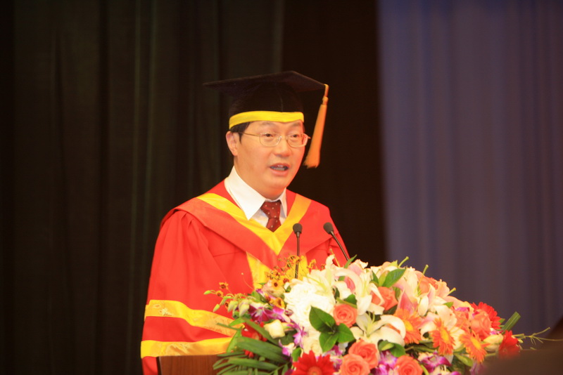 隨后,譚向勇校長發表講話,感謝學生們用心給母校準備的禮物,并祝賀他們順利畢業。校長講道:學生們把最美好的青春年華留在了工商校園,回首的點點滴滴將成為一生中最難以割舍的回憶。譚校長結合當前社會形勢表達了對畢業生們的諄諄教誨,并提出了十條建議:要懷有高度的社會責任感,要腳踏實地的工作,要培養自身的核心競爭力,要具備團隊合作的能力,要堅持不懈的努力學習,要具有現代文明社會的基本素養,要擁有健康的身體和心理,要適當的淡泊名利,要盡可能少些抱怨,要永遠懷有感恩之心。句句話語體現出母校對畢業生們的關心與期望。