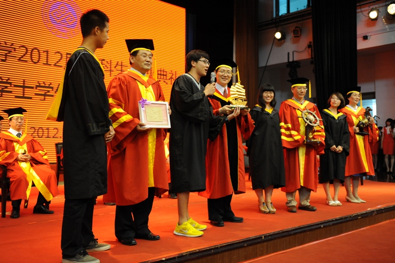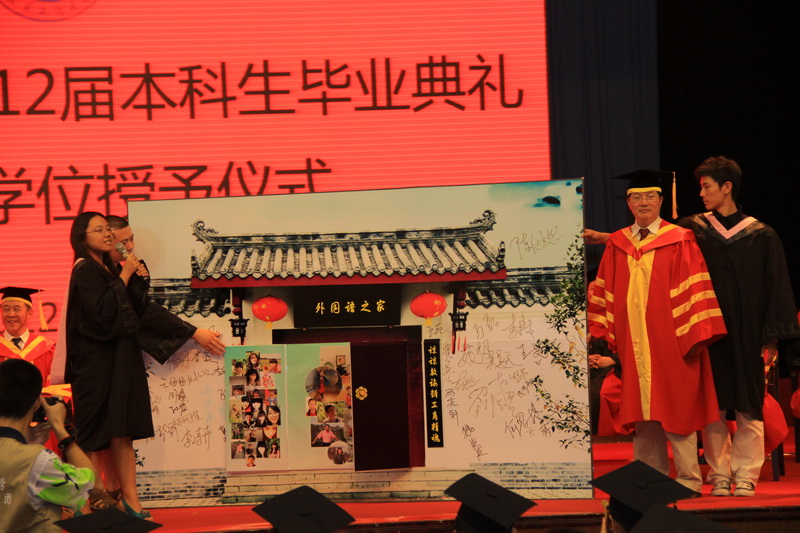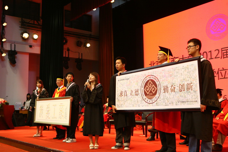 2012屆畢業生是一屆有著燦爛回憶的畢業生。在國慶60周年閱兵儀式的艱苦創業方陣中,他們用矯健的步伐展現著工商學子的昂揚志氣;在校慶60周年的慶典上,他們又用激情與汗水見證著工商春風化雨的歷史;而今天,在這惜別之季,他們為母校帶來了新的祝福與感動。來自各學院的學生代表,將他們精心挑選的,或者是親手設計的禮物贈送給了他們所在的學院和母校。一份份意義特殊的禮物,表達了他們對恩師和母校深深的感激、眷戀與不舍之情,也表達了對學校的美好祝福。