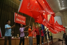 隨后,校黨委副書記盧思鋒為10個社會實踐分團授予2012年暑期社會實踐團隊旗幟。