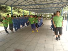 加時體育游藝課中,驕陽之下熱情不減的同學們與“老師們”并肩作戰,高喊著“我們是最棒的”、搭肩成隊的投入瘋狂兔子舞的游戲中,團隊協作的集體意識在無形中在同學們心中成型。