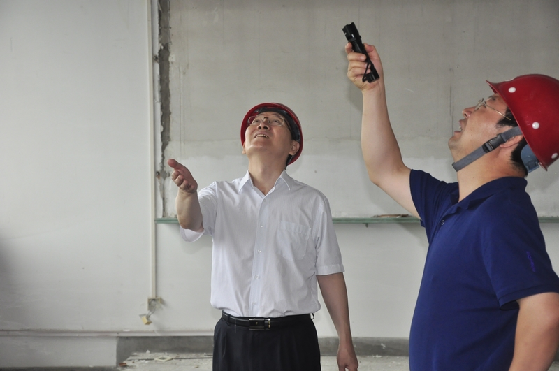 隨后譚向勇校長、呼文亮副校長帶領相關部門人員現場查看了綜合樓地下室、圖書館及地下室、教一樓及屋頂等區域,了解樓宇漏水滲水情況、目前的排水情況、采取的防漏堵漏措施和下一步的防汛工作方案。