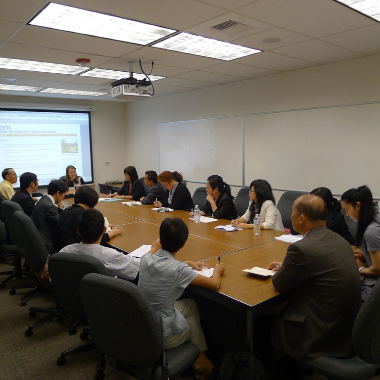 20日上午,UCDAVIS 教學卓越中心(Center for Excellence in Teaching and Learning)副主任Rosemary Capps博士為培訓團做了“如何促進教師教學能力提升”的專題講座。她指出,美國大學都設有一個為教師教學教法提供咨詢與服務的專門機構,由從事教學教法研究的專家通過隨堂聽課、與教師一對一咨詢、學生小組討論等方式為那些課堂教學存在問題或困難的教師提供幫助,從而提高課堂教學效果,為學生提供高質量的教育服務。這體現了傳統的“以教學者為中心”向現代“以學習者中心”教學理念的轉變。為此,學校提供教師業務素養和創新教學能力的平臺,大力支持教師的學習與發展。UCD教學卓越中心項目中積極而明快的校風、追求真理的辦學理念,追求雙贏、不斷追求卓越的教與學的理念讓培訓團老師們受益匪淺,大家認真記錄,踴躍提問,與Rosemary Capps博士交流探討。