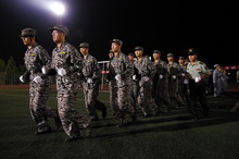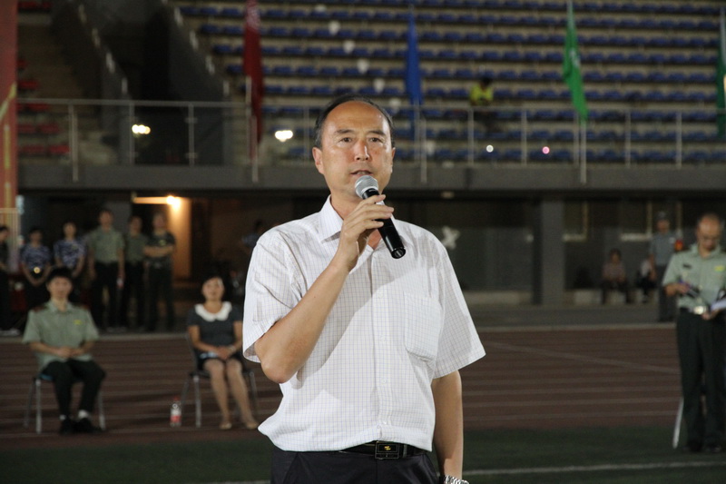 8月29日晚,2012級(jí)新生軍訓(xùn)第一次會(huì)操表演在操場(chǎng)隆重舉行。在開(kāi)訓(xùn)第三天就召開(kāi)如此隆重正式的會(huì)操表演,在近年新生軍訓(xùn)中尚屬首次。3000多名新生在教官的帶領(lǐng)下整齊地圍坐在操場(chǎng),靜候軍訓(xùn)團(tuán)領(lǐng)導(dǎo)和學(xué)校領(lǐng)導(dǎo)的檢閱。出席此次會(huì)操的領(lǐng)導(dǎo)有:校黨委副書(shū)記、軍訓(xùn)團(tuán)總指揮盧思鋒,軍訓(xùn)團(tuán)副總指揮、政委呂素香,軍訓(xùn)團(tuán)副總指揮頓勁松,軍訓(xùn)團(tuán)副團(tuán)長(zhǎng)徐紅京,軍訓(xùn)團(tuán)副政委呂良、劉晶,承訓(xùn)部隊(duì)副團(tuán)長(zhǎng)、學(xué)校軍訓(xùn)團(tuán)團(tuán)長(zhǎng)王學(xué)東,承訓(xùn)部隊(duì)參謀長(zhǎng)、學(xué)校軍訓(xùn)團(tuán)參謀長(zhǎng)王忠偉。本次會(huì)操由王忠偉參謀長(zhǎng)主持。