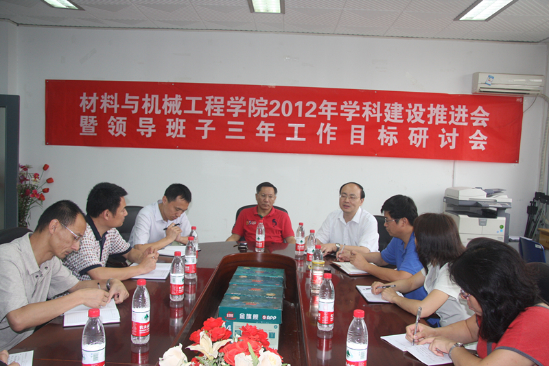 8月31日下午,材料與機械工程學院召開“2012年學科建設推進會暨領導班子三年工作目標研討會”。謝志華副校長應邀出席并講話。材料與機械工程學院領導班子成員、系主任、教師代表參加會議。會議由院長黃志剛主持。