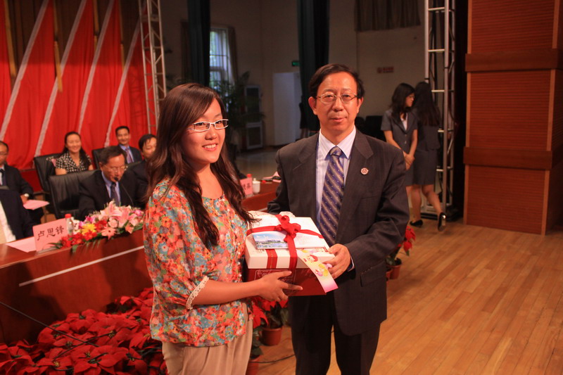 孫寶國院士還代表學校,為唯一一位今天過生日的新生黃琳同學送上了譚向勇校長親筆簽名的生日賀信和生日蛋糕,并與之合影,讓在場的研究生新生們羨慕不已。此后,學生代表向在場的所有老師獻上鮮花,感恩教師節,祝福所有的老師節日快樂。