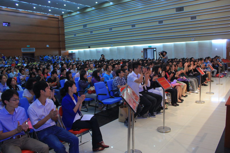 最后,譚向勇校長講話,他首先代表學校對2012級研究生的到來表示熱烈的歡迎,隨后介紹了學校的發展歷史、現實情況、未來規劃以及2012屆研究生畢業生在校期間的科研情況,他指出目前學校的各方面正在逐步地完善,學校將努力為學生提供舒適的學習生活環境,開拓國際留學的培養途徑,不斷提高研究生培養水平。接著,譚校長從兩個方面對研究生們提出十點希望:第一方面要做好學問,包括學會發現問題,多閱讀,常思考;勇于追求真理,大膽質疑,不要被專家的思想束縛住;努力擴大知識面,眼界要開闊,不要局限于本專業知識的學習;要提升基本的技能,包括邏輯、表達、寫作、數學、外語等方面的能力;要小題大做,找準學位論文研究的切入點。第二方面要學會做人,做一個高尚的有社會責任感的人,這是人類共同的標準;做一個踏實的人,不要眼高手低;做一個能合作的人,善于處理好各種人際關系,學會和不同的人打交道;做一個有修養的人,幽默風趣,有生活品味;做一個身心健康的人,要有強健身體和健康心理。
