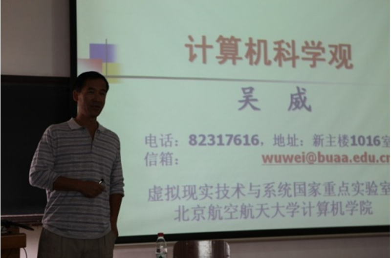 首先,黨總支書記陳誼代表學(xué)院向吳威教授到我校作報(bào)告表示熱烈的歡迎和衷心的感謝,然后介紹了吳威教授的學(xué)術(shù)成就,并說明了科學(xué)精神與科學(xué)道德對(duì)研究生的重要意義。吳威教授是北京航空航天大學(xué)計(jì)算機(jī)應(yīng)用工程系主任,虛擬現(xiàn)實(shí)技術(shù)與系統(tǒng)國家重點(diǎn)實(shí)驗(yàn)室副主任,他負(fù)責(zé)并完成了國家九五、十五“863”重點(diǎn)項(xiàng)目、國家重點(diǎn)基礎(chǔ)研究發(fā)展計(jì)劃“973”項(xiàng)目、北京市自然科學(xué)基金等多個(gè)項(xiàng)目,榮獲國家科技進(jìn)步二等獎(jiǎng)、中國高校科技進(jìn)步一等獎(jiǎng)、北京市科技進(jìn)步一等獎(jiǎng)等多項(xiàng)獎(jiǎng)項(xiàng)。