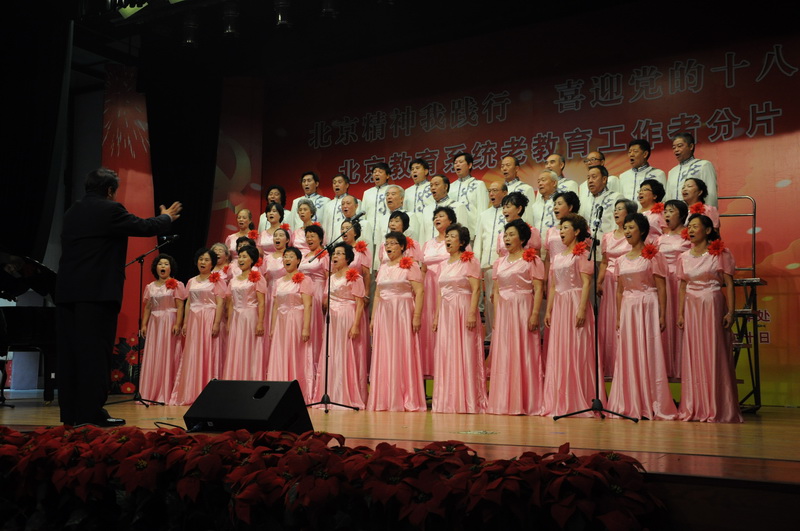 9月20日上午,“北京精神我踐行、喜迎黨的十八大” 教育系統老教育工作者分片文藝演出在阜成路東區禮堂舉行。文藝演出由北京市委教育工委市教委離退休干部處、北京市老教育工作者總會、北京教育老干部活動中心主辦。