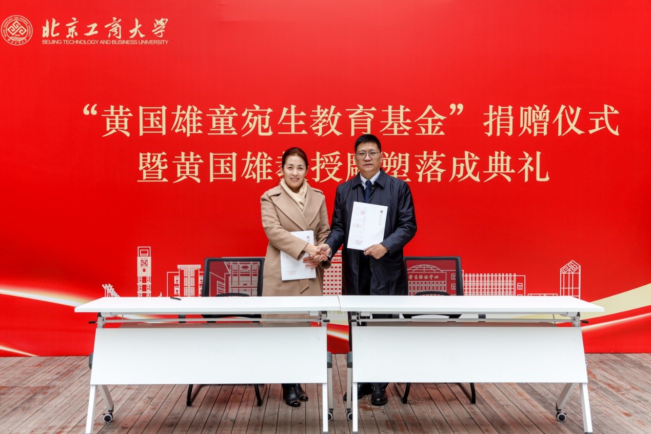 1月19日上午,“黃國雄童宛生教育基金”捐贈簽約儀式暨黃國雄教授雕塑落成典禮在良鄉校區經濟學院舉行。我校黨委常委、副校長、教育基金會理事長徐丹丹,原副校長謝志華,經濟學院榮休教師童宛生,86經濟法校友、北京市政協委員、北京美臣保理投資管理公司董事長黃軼及校友代表、黃國雄童宛生教授學生代表等出席儀式。儀式由經濟學院黨委書記呂良主持。