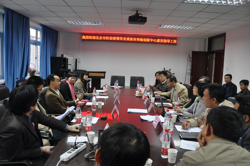 10月15日,應方德英副校長邀請,北京市經濟和信息化委員會萬新恒副主任、科技標準處林紹福處長、電子信息產業處楊愛民處長、諾基亞體驗創新中心傅蕾總經理等一行六人到計算機與信息工程學院參觀交流,并就學校與諾基亞體驗創新項目中的科技合作意向進行溝通。