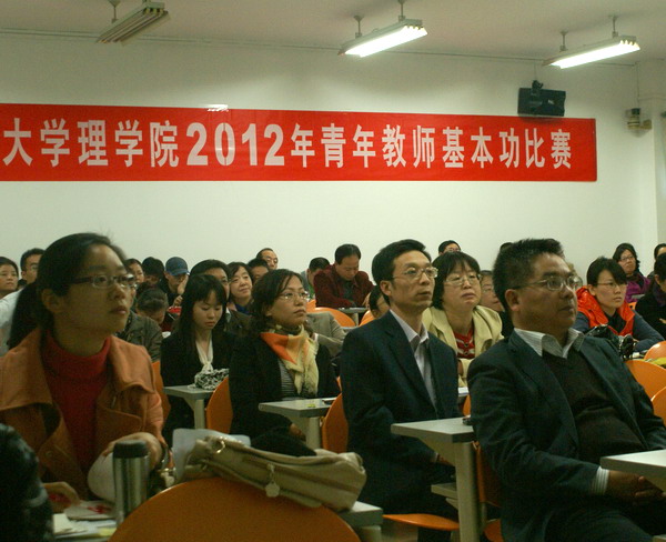為促進青年教師教學基本功的提高,展示青年教師教學風采,10月17日,理學院2012年青年教師基本功比賽在阜成路校區舉行。學院領導曹顯兵、祝鈞、李寶河、何聰芬、王嘉彥以及全院教師全程觀摩比賽并擔任比賽評委。比賽由黨總支書記祝鈞主持。