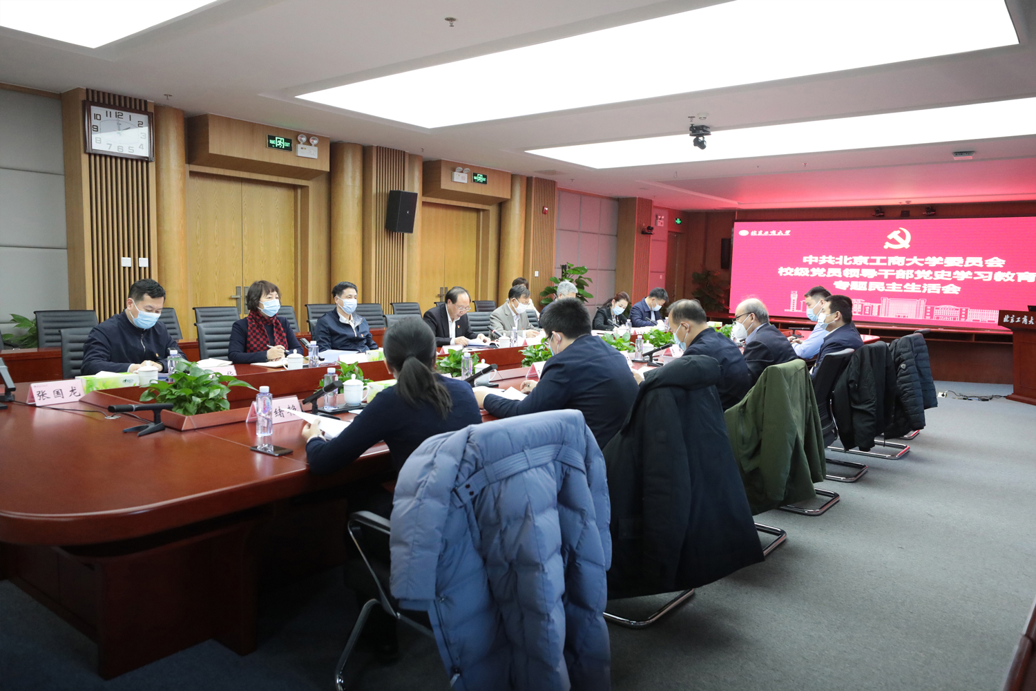 會上,黃先開通報了2020年度民主生活會整改措施落實情況和本次民主生活會征求意見情況,并代表學校領導班子作對照檢查發言,對照習近平總書記關于嚴肅黨內政治生活的重要指示精神,堅持首善標準和問題導向,圍繞帶頭深刻感悟“兩個確立”決定性意義,增強“四個意識”、堅定“四個自信”、做到“兩個維護”;深入貫徹習近平總書記對北京一系列重要講話精神和黨中央決策部署,履職盡責、擔當作為;帶頭踐行以人民為中心的發展思想,確保黨永遠保持同人民群眾的血肉聯系;帶頭學習運用黨在不同歷史時期成功應對風險挑戰的豐富經驗,增強憂患意識,敢于斗爭、善于斗爭;帶頭深刻汲取黨史中正反兩方面經驗,履行全面從嚴治黨責任等方面檢視剖析,深刻查擺問題并剖析產生問題的思想根源,提出整改方向和切實可行的落實措施。