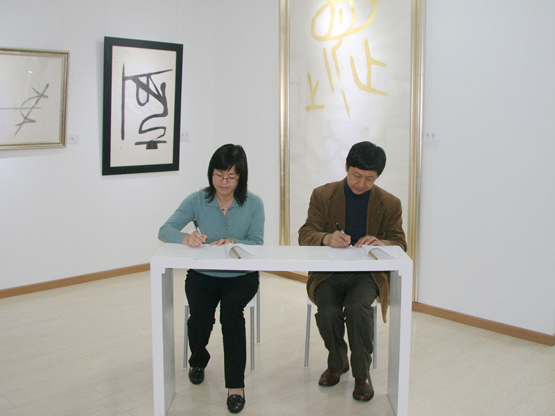 學(xué)校商學(xué)院教授龐毅宣布首次文化沙龍正式啟動(dòng)。商學(xué)院黨總支書記歐陽愛平代表北京工商大學(xué)MBA教育中心與魏曉寰先生簽署了合作協(xié)議。嘉賓們共同為魏曉寰藝術(shù)文化研究交流中心暨北京工商大學(xué)MBA藝術(shù)體驗(yàn)中心揭牌。