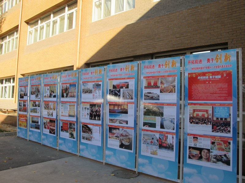 為迎接中國共產(chǎn)黨第十八次全國代表大會召開,10月31日,宣傳部在阜成路、良鄉(xiāng)兩校區(qū)分別展出了主題為“科學(xué)發(fā)展 成就輝煌”、“開拓前進(jìn) 勇于創(chuàng)新”和“同心同德 開拓進(jìn)取”的宣傳展板。